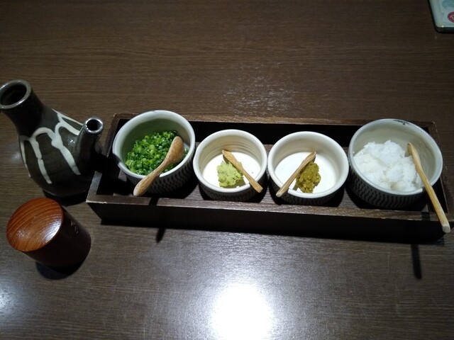ひつまぶしには、薬味として、小ネギ、おろし、わさび、柚子胡椒。各々鰻の違った美味しさを楽しめる。初めて柚子胡椒で食したが、さっぱりとした後味に感動。