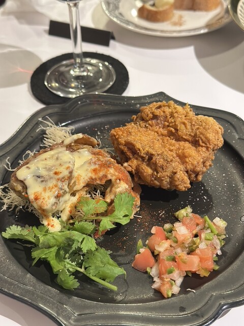 ・ソフトシェルクラブのエスニックソテーと鶏もものフレッシュハーブからあげ〜コリアンダーとサルサのアクセント〜