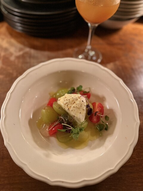 ブッラータとシャインマスカットのカプレーゼは甘じょっぱくて新しい感じだし、