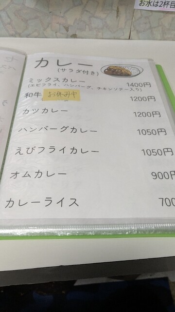 何度も滞在している五所川原ですが夕食はいつも飲みの席になりがちでなかなかきちんとした夕食を食べに行く機会がない中、久々に一人の食事になったので夜の市内をホテルで借りた自転車で徘徊してたどり着いた店。予備知識なしでしたが大盛りが名物のようですが普通のミックスカレーに…したのですが充分大盛り(笑)黄色いごはんの上に手作りのハンバーグにチキンソテー、そしてまさかの有頭エビフライ。ルーもたっぷりでサラダ付。大好きなタイプのカレーでまた行きたい店が増えました。