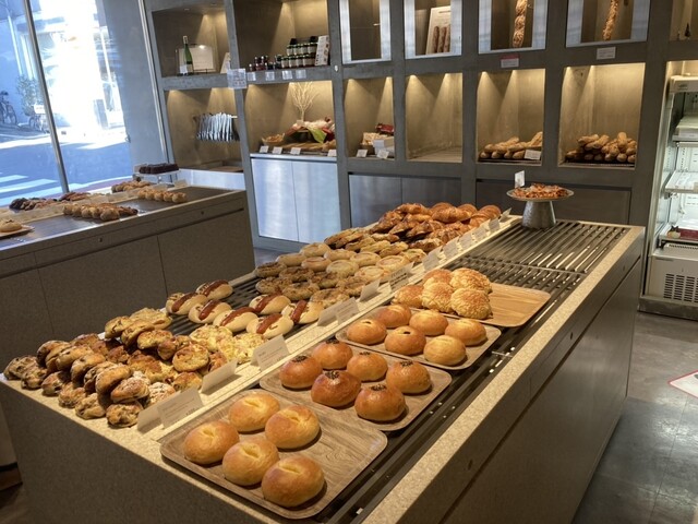 自分でトレーに好きなパンを取っていくスタイルですが、空間が広々としているのでお客さんが多くてもパンを見やすいです。