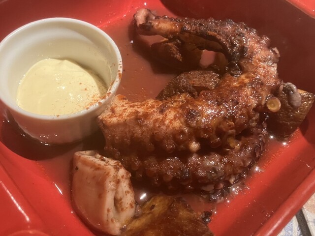 ハモンとストラッチャテッラのピンチョスは塩けも良く、美味しい。