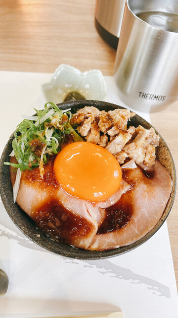 豚飯は…レアチャーシューとコロチャーシュー、卵黄と絶妙なタレが何も言えなくなる美味さ…近くに有ったら週2で通いたいなぁ。本来なら醤油も食べなきゃだけど塩が美味すぎて選べない…。