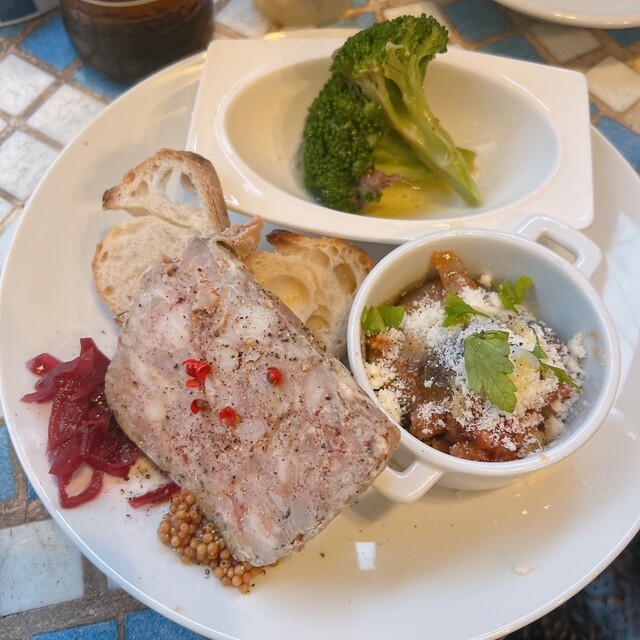 ブロッコリーのアンチョビ和え、ナスのトマト煮、自家製お肉のパテとハシゴ酒でちょこちょことつまむには最高すぎる組み合わせ