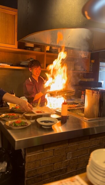 大トロイワシや特大海老を焼いている光景が迫力満点