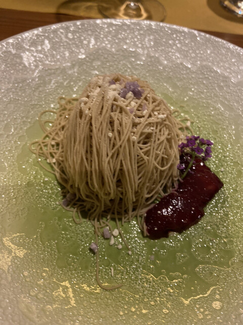 和栗のモンブラン。柔らかい栗のペーストが口の中でとゆっくり溶ける感じが、幸せでした♡