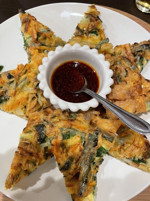 一緒に行った友人が甲殻類アレルギーなので野菜チヂミをオーダー。