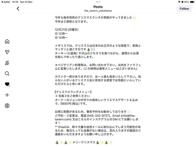 最新の情報とは異なる可能性がありますので、お店の方にご確認ください。詳しくはこちら