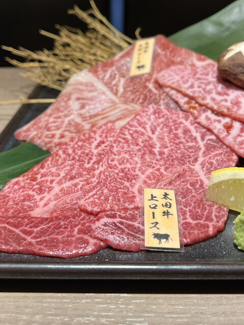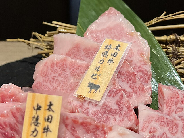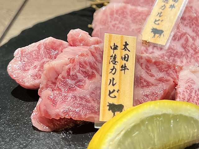 但馬太田牛を中心に部位ごとに細かく分けて提供しているため、いろいろな種類が楽しめる。