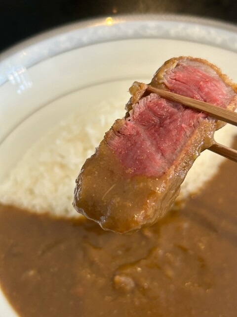 出てきた牛カツはお塩で食べてもカツカレーにしても柔らかくて絶品✨️