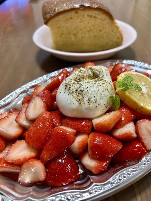 生ブラッティーナチーズ、いちごのマリネ