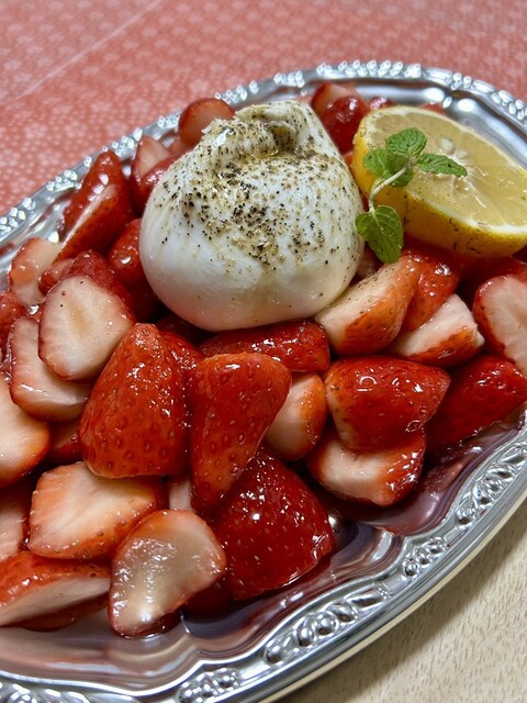 【創作料理Ryota】ブラッタチーズと完熟いちご フランボワーズソース♡