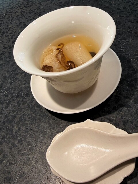 途中からは「中国酒テイスティングフライト5種」も追加。「夏之酒」という素晴らしい紹興酒との出会いがあり、食事とのペアリングと余韻をさらに深めてくれた。