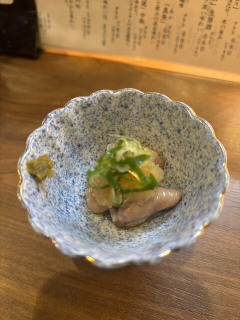 ぼちぼち疲れがピークに…3日休肝日明けのビールでスタート、ここの生ビールはいつも美味しいです。一瞬で飲み干して早々日本酒にシフト、その後は純米大吟醸の「得月」→純米大吟醸「盾野川・無我」→純米吟醸「作・銘柄失念…」→日本酒•「完全に忘れました」…おすすめの日本酒が続けて出て来ました、どれも特徴があり美味しいです。初めて飲んだ中では盾野川が好みでした。ただ得月が好みすぎるので毎回一位は得月です、もちろん好みですがのあみさんで得月を超える日本酒に出会いたいですね。