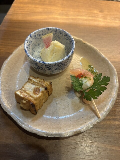「おっ!」最初の定番3種盛りに銀杏が…基本同じコースなのですが細かいところを色々と変えてくれる演出素敵です。