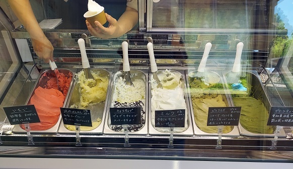 『能勢倶楽部ジェラート工房』でジェラートいただく。「ルバーブソース」っていうトッピング、アンチエイジングやダイエットにも良いっていう、女性向けの健康野菜。甘酸っぱくて野菜とは思えないよ! | はっぴー