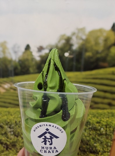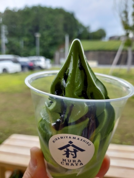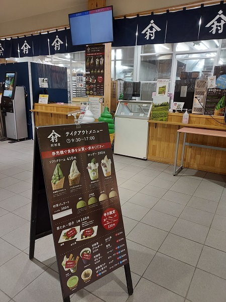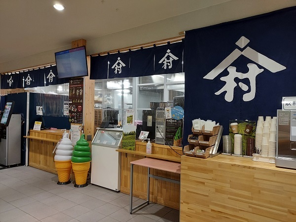 「道の駅みなみやましろ村」の『村茶屋』。ソフトクリームなどの、スイーツのテイクアウト。向かいのレストランでランチを食べて、ショッピングもしたら、ここも外せない!食後のデザート、いきましょう!