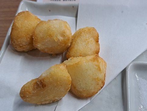 そして里芋唐揚げ。揚げたて熱々を、塩でいただく。これ大好き。