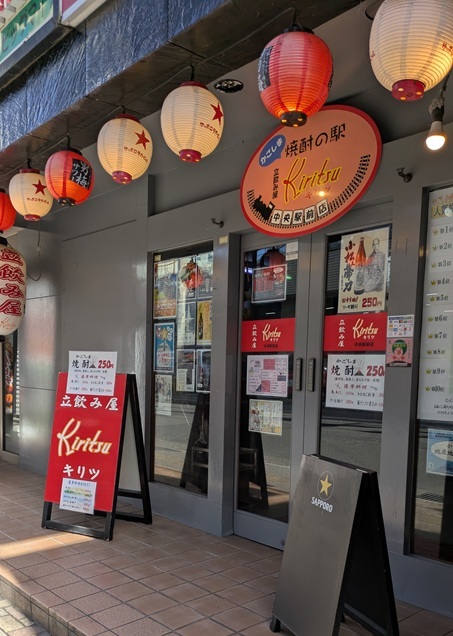 鹿児島中央駅近の『立ち飲み kiritsu』は、ちょい飲み、昼呑みに最高やん(^-^)安いし、焼酎の種類がものすごい!スタッフさんも知識豊富で、焼酎初心者でも安心。帰りのバス、ギリギリまで飲めます。