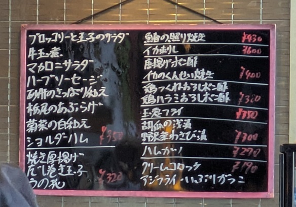 途中、女性がひとり入ってきた。この人もお酒と、アテを何種類か頼んでた。慣れてるなぁ。まぁ、エキナカの立ち飲み。お店もキレイだし、女性ひとりでも入りやすい。