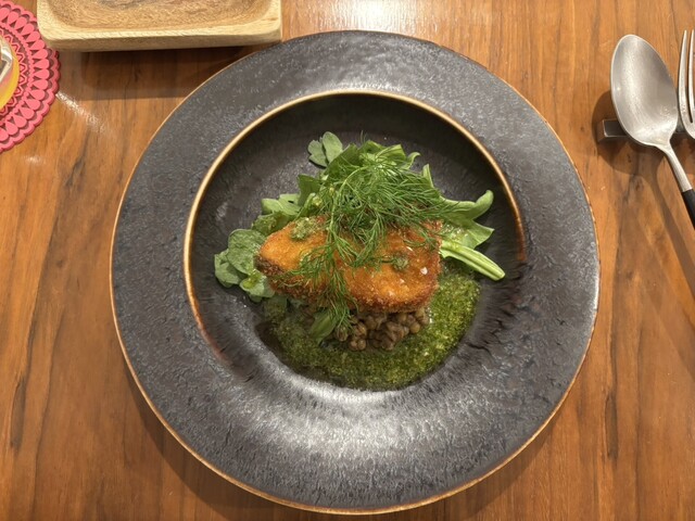 ペアコースを注文。前菜(おばあちゃんのパテ)、パスタ、魚料理(カツレツ)、肉料理、デザート。一品一品ボリュームがありお腹いっぱい。もちろん味も美味しかったです。お店はカジュアルな雰囲気ですが落ち着いた感じです。18時ジャストにお店はオープンです。