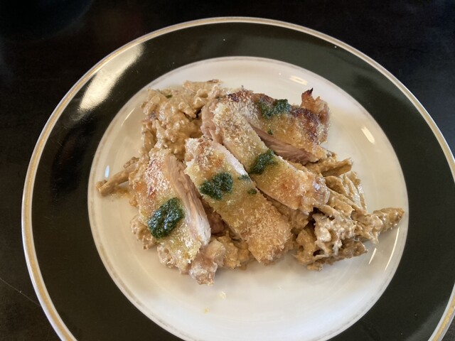 皮が香ばしく焼かれた鶏肉にラタトゥユ