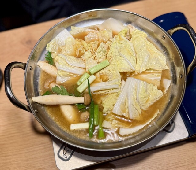 味噌仕立てのスープはコクがありますが、重たさは出すぎず、牡蠣の旨みを素直に引き立てている印象でした。白菜やきのこ、薬味とのバランスも良く、火が入るにつれて具材から旨みが溶け込み、後半にかけて味のまとまりが増していきます✨