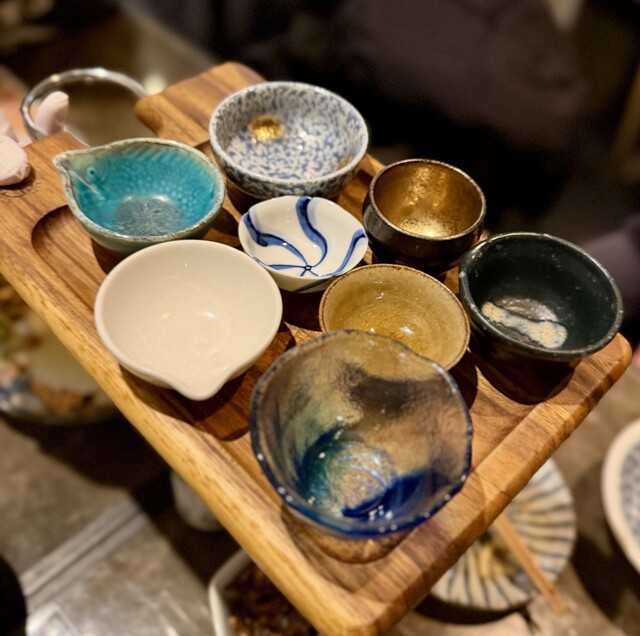 日本酒での、おちょこを選べるのも楽しいポイント。器選びから飲む時間まで含めて、きちんと楽しませてくれるお店だと感じました。