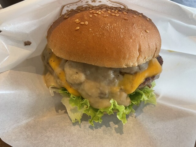 マッシュルームチーズバーガー ~ポルチーニクリームソースを注文。見た目がすごく良い。どこのお店を利用しても同じクオリティで提供できるのがすごいなぁと思います。安定の美味しさで期間限定の商品なのがすごく残念です。1年通して食べたい。この店舗は2階もあり、落ちついて利用できるのが良いなと思います。