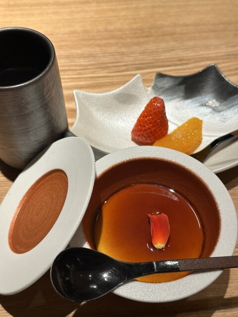 最後はデザートのジャスミン茶のプリンとフルーツ。