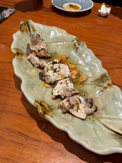ふぐの炭火焼きは色んな部位を出してくださり