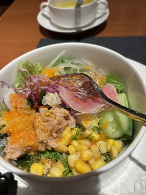 予約した方が無難なお店でした。サラダはたっぷりで、ドレッシングがみかん、シーザー、フレンチから選べますが、手作りなので全部美味しそうで悩みましたが珍しいみかんにしました。とっても美味しかった...