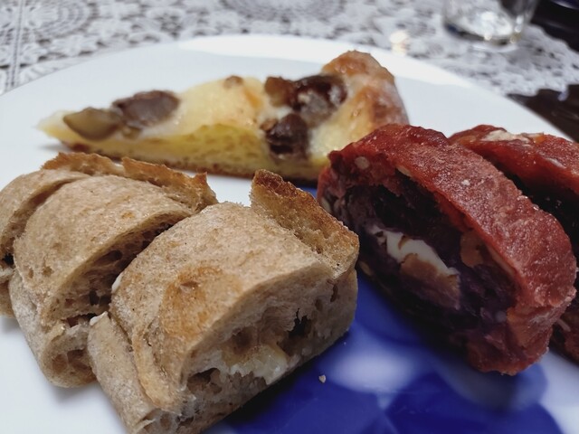 カットした蜂蜜の誘惑(左)、混沌(右)、栗のプレサンヌ(奥)
