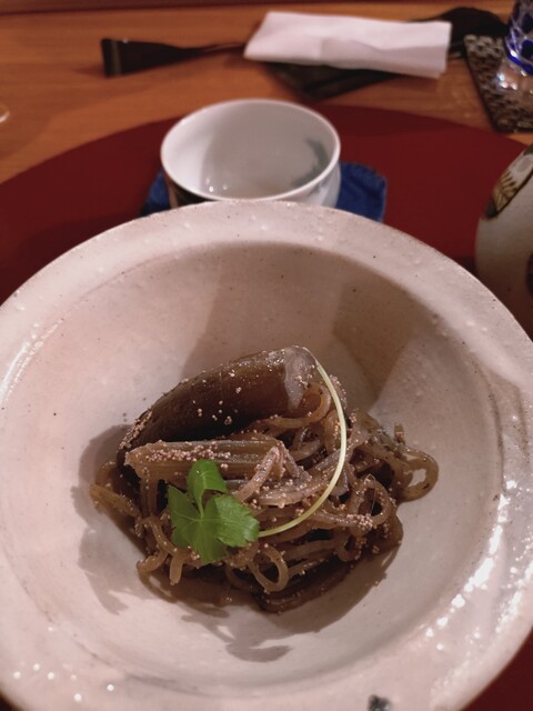 今夜は、先に挙げた日本酒以外に広島の宝剣、睡龍の生酛のドブ、梅乃宿酒造のUnfeigned SAKEを一合ずつ頂き、後述する料理も含めて、二人で13000円台であった。