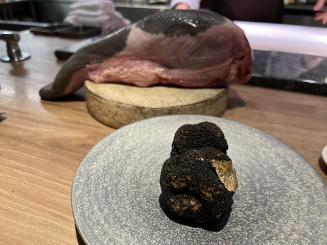 *和牛タン元のお刺身 フランス産、トリュフ添え
