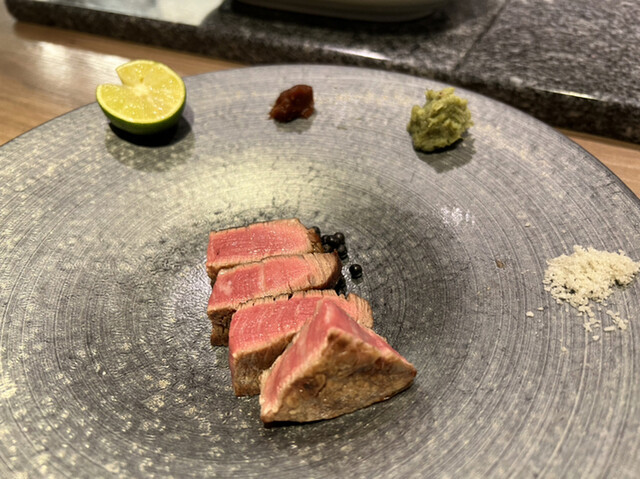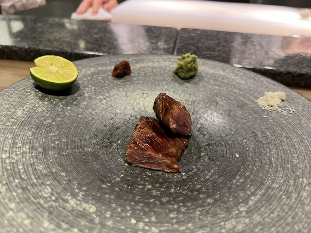 雲丹と合わせるだけあって、濃厚な脂の旨味感じる和牛でした。