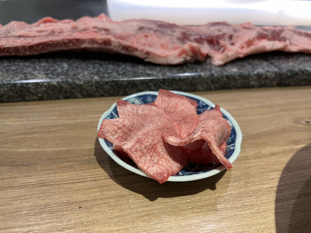 タン元、ハラミ、シャトーブリアンの焼肉です。