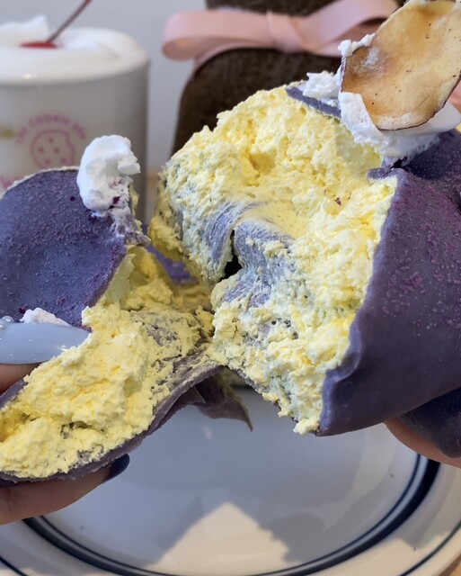 クレープ生地はもちもちでクリームは甘め!ミルクレープの生地が厚くなってクリームの量が増えた感じです。甘いの好きな方はぜひ!