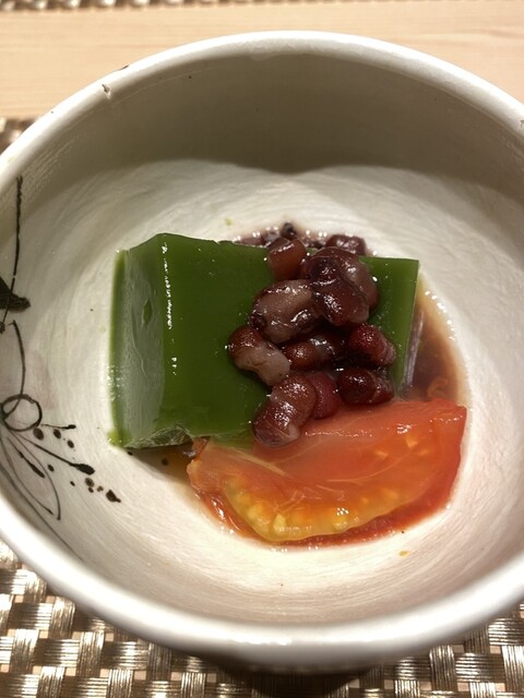 プリップリの鮑が最高。ハモも程よい歯ごたえがあって美味しかったです!冷たくサッパリしていて夏にピッタリな一品でした☺️