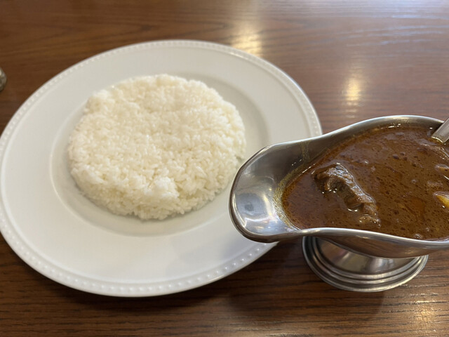 店の看板メニューを中辛で。サラリとした、でもじっくり煮込んでありそうなルーに大ぶりの角切り肉とじゃがいも。角切り肉はホロホロに柔らかく美味しい!!