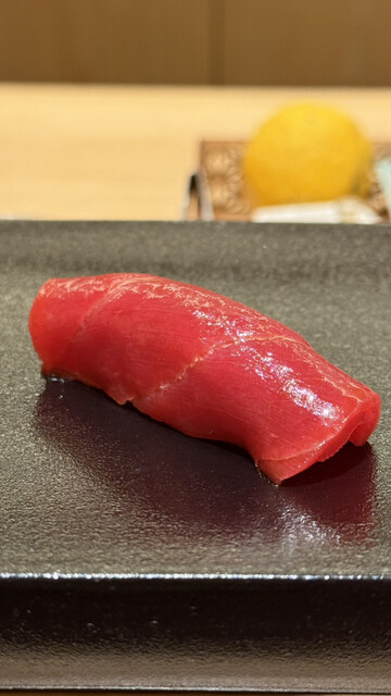 ・北海道厚岸のマグロ赤身(いやらしさが一才なくマグロの旨味だけが残った一品。キリっとした醤油の香りとマグロの旨味が口内を突き抜ける)