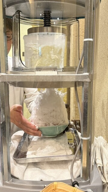 その場で削り作るかき氷はふわふわで、外だけでなく中にも具が入ってます