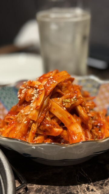 それだけじゃ無い、最初に出てきたもやしナムル、クリームチーズキムチ、浅漬け白菜キムチもバチバチに白米が進む味
