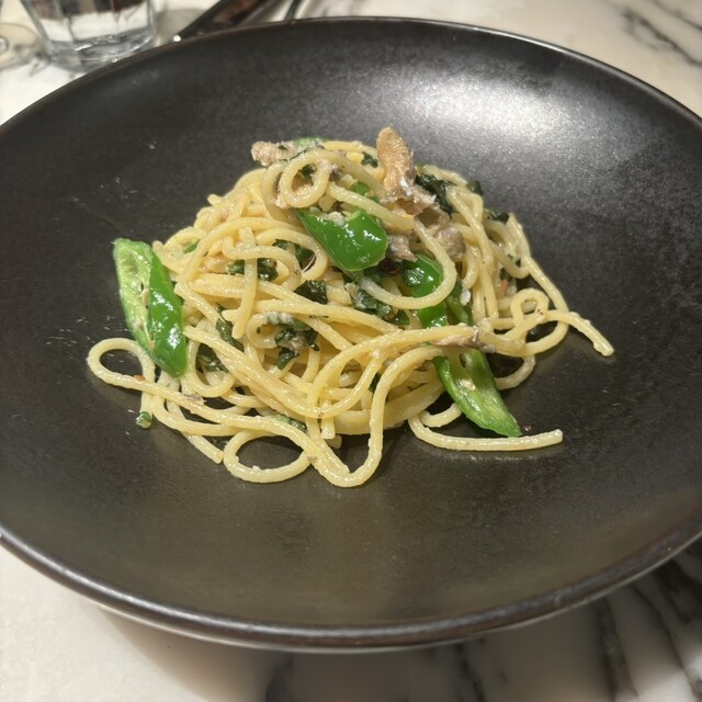 ・鮎と万願寺とうがらしのペペロンチーノ: