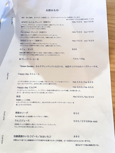 そんなわけで我が家は遠くてもたまに行きたくなるスポットで、前々から子どもと休憩できるカフェやファミレスでもないかしらー(たしかガストはあるけど遠い)と思っていたのですが、1年ほど前に可愛いカフェが出来てました。公園東側に面した、その名もはなをくんくん!絵本のタイトルからとった店名だそうです。看板の字も可愛くてキュンです。