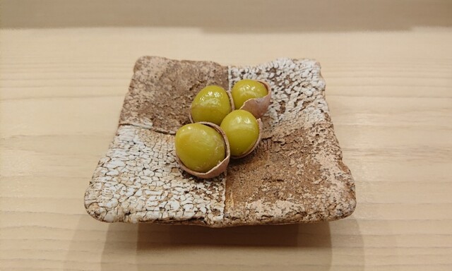 序盤の銀杏はあえてなのか温めでの提供。続く平目の刺し身でコリコリではないけれど噛むと返ってくるしっかりとした身を堪能。