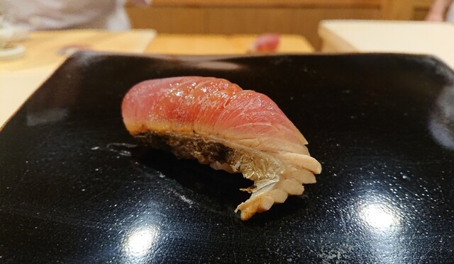 特に好みだったのは藁焼きの風味を纏わせた鰹、程良い脂の乗った中トロ(直後の大トロより好み)、地味ながらも絶妙なバランスの元に成り立つイサキ。