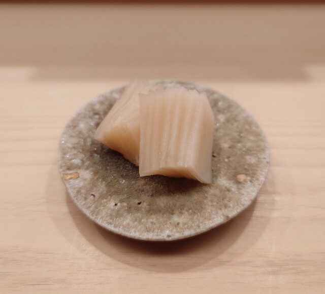 小振りの浅利のほのかに甘い出汁で口内を休ませて形状が変化したガリでリクエスト物と残りの握りを味わいます。