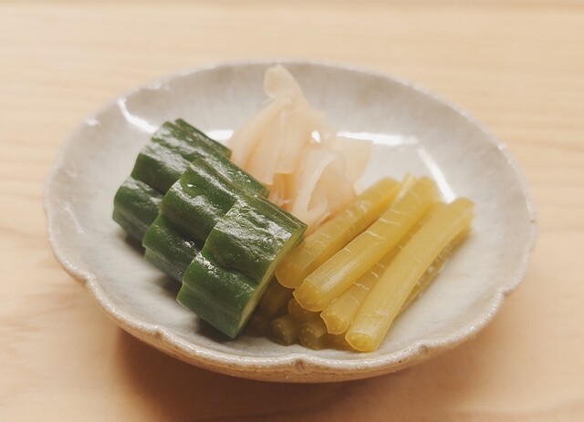 箸休め:新生姜のガリ/ぬか漬け/蕗