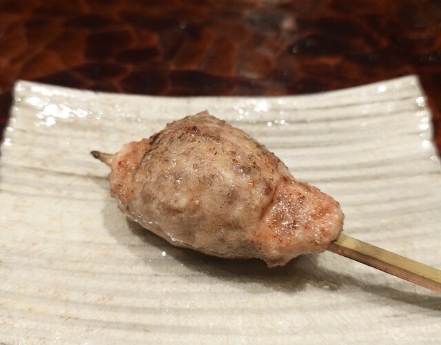 串もいきなり肝とつくね、とスタンダードな開始ではなく、意表を突く展開。パッと見はそこまで目立たない見栄えですが、口に入れた途端に笑顔になってしまう火入れと部位ごとの見事な肉質の違いを愉しむことができます。他の焼き鳥店との味わいとまた違った美味しさ。